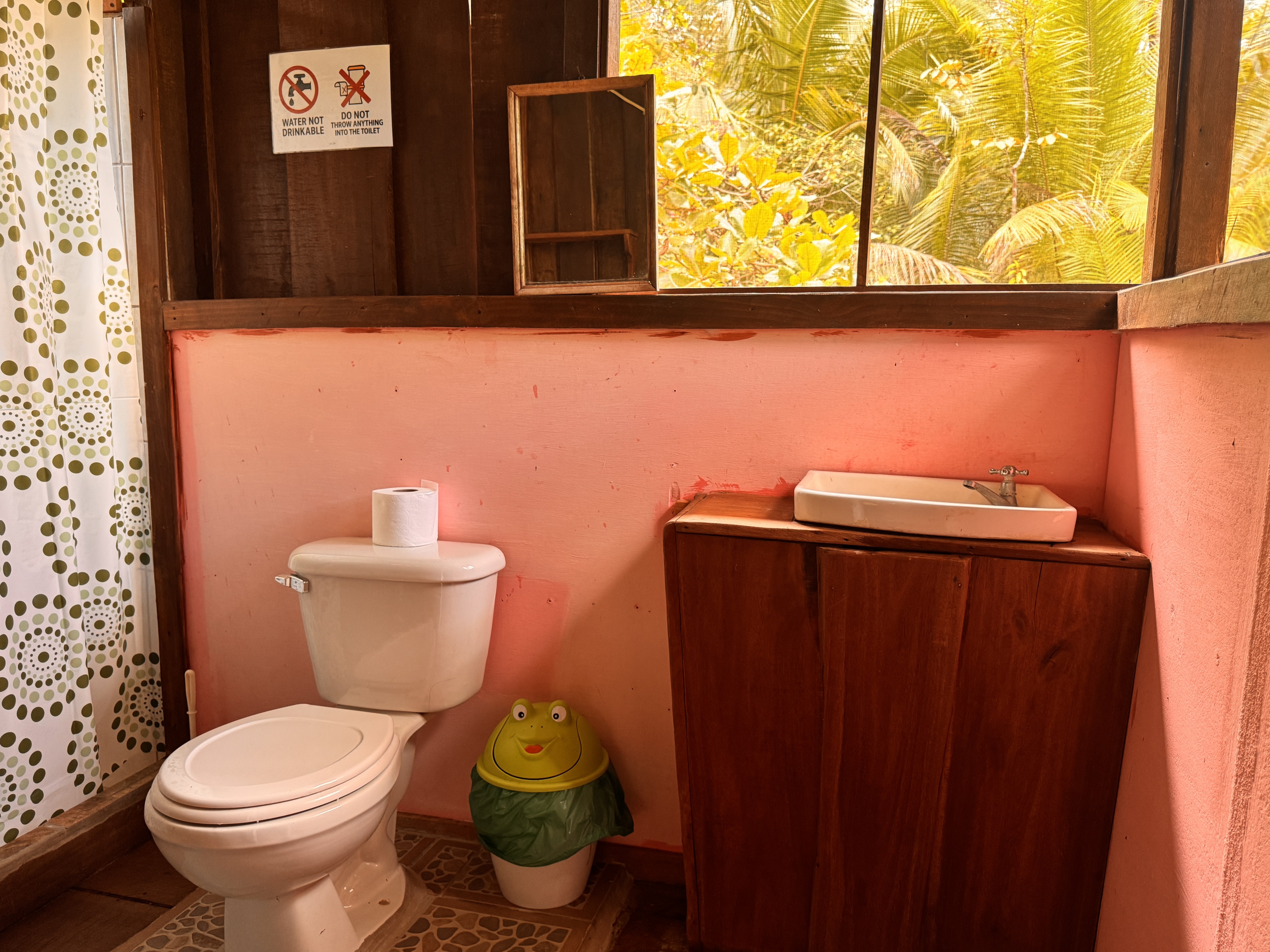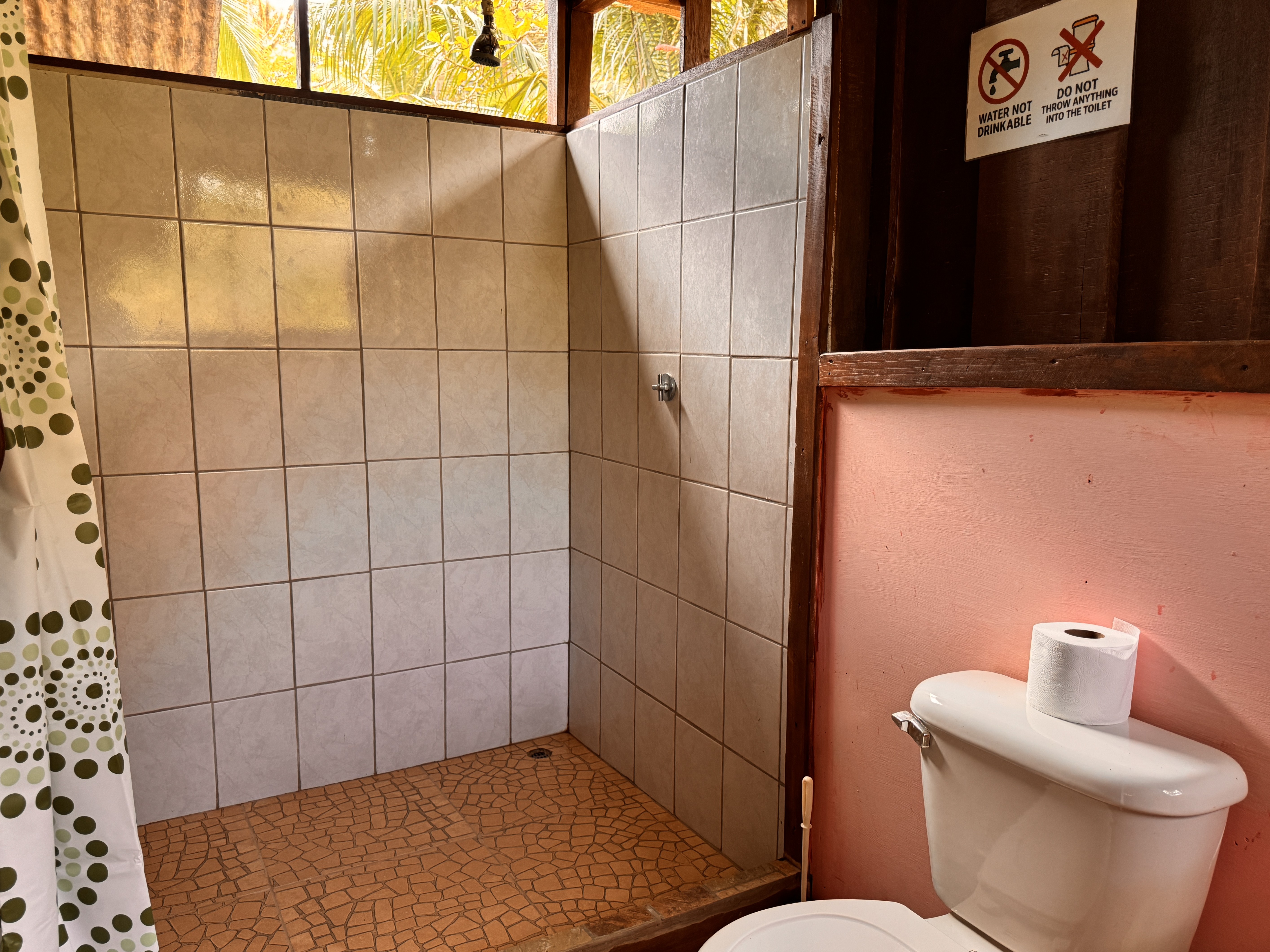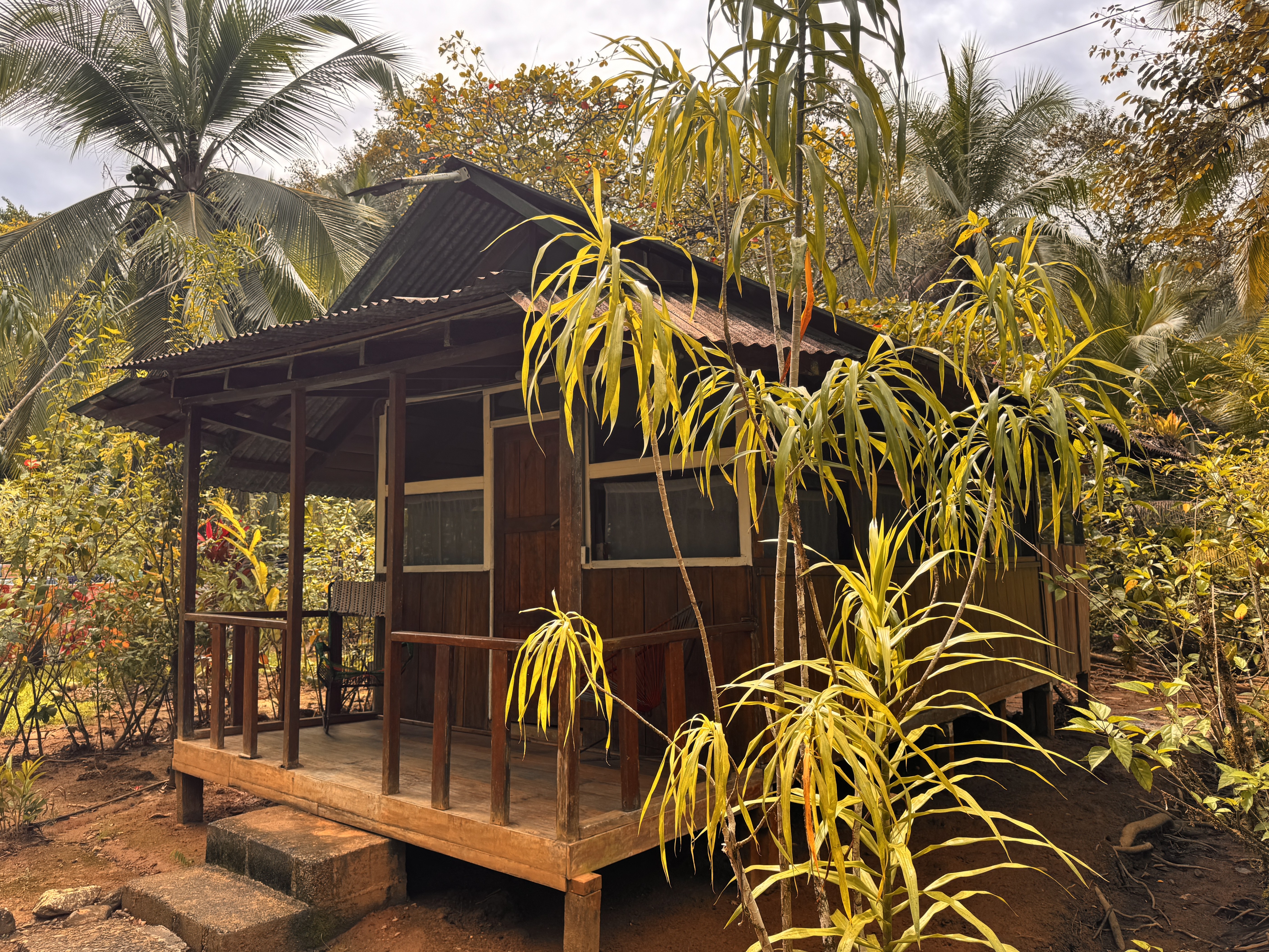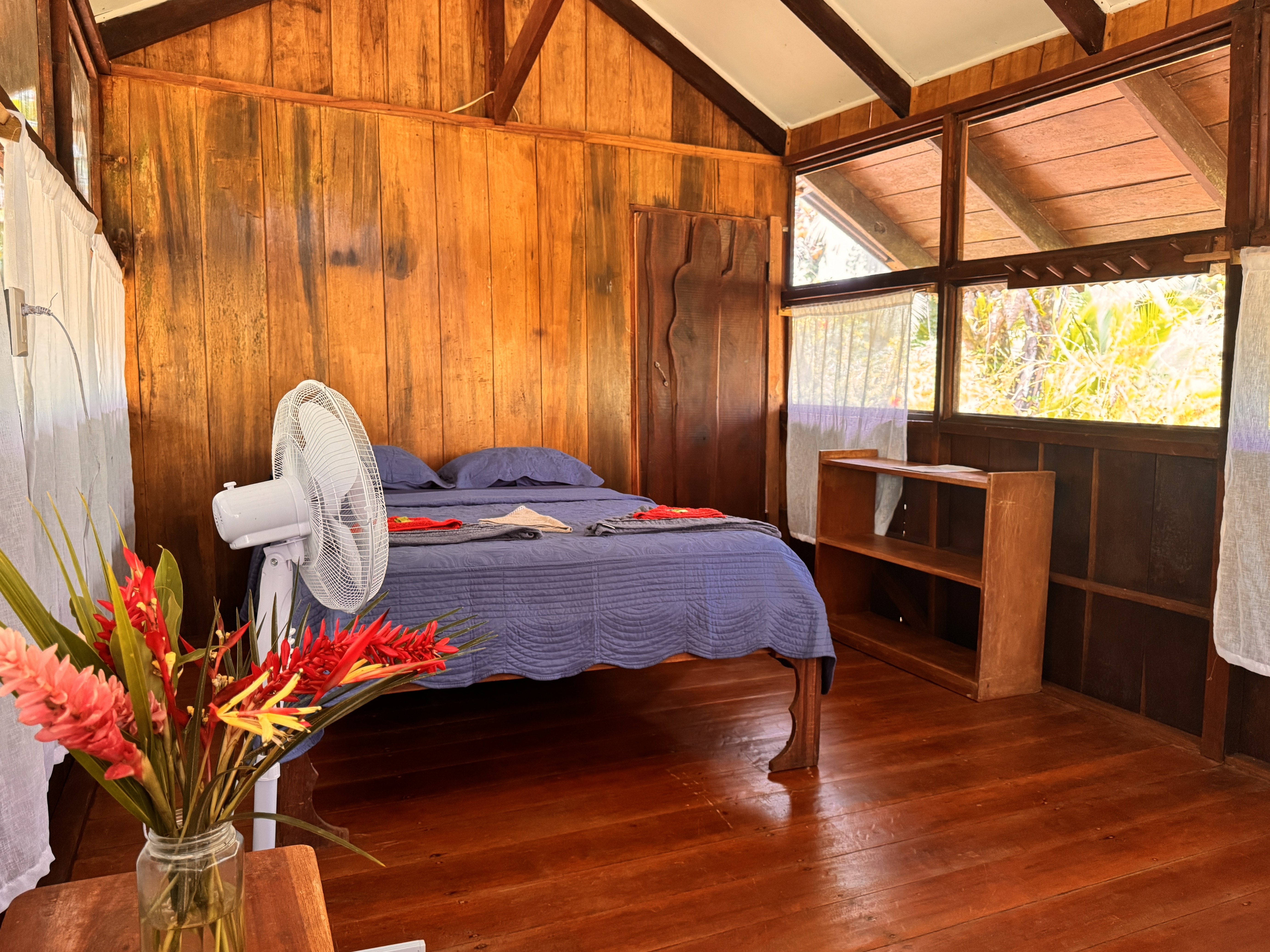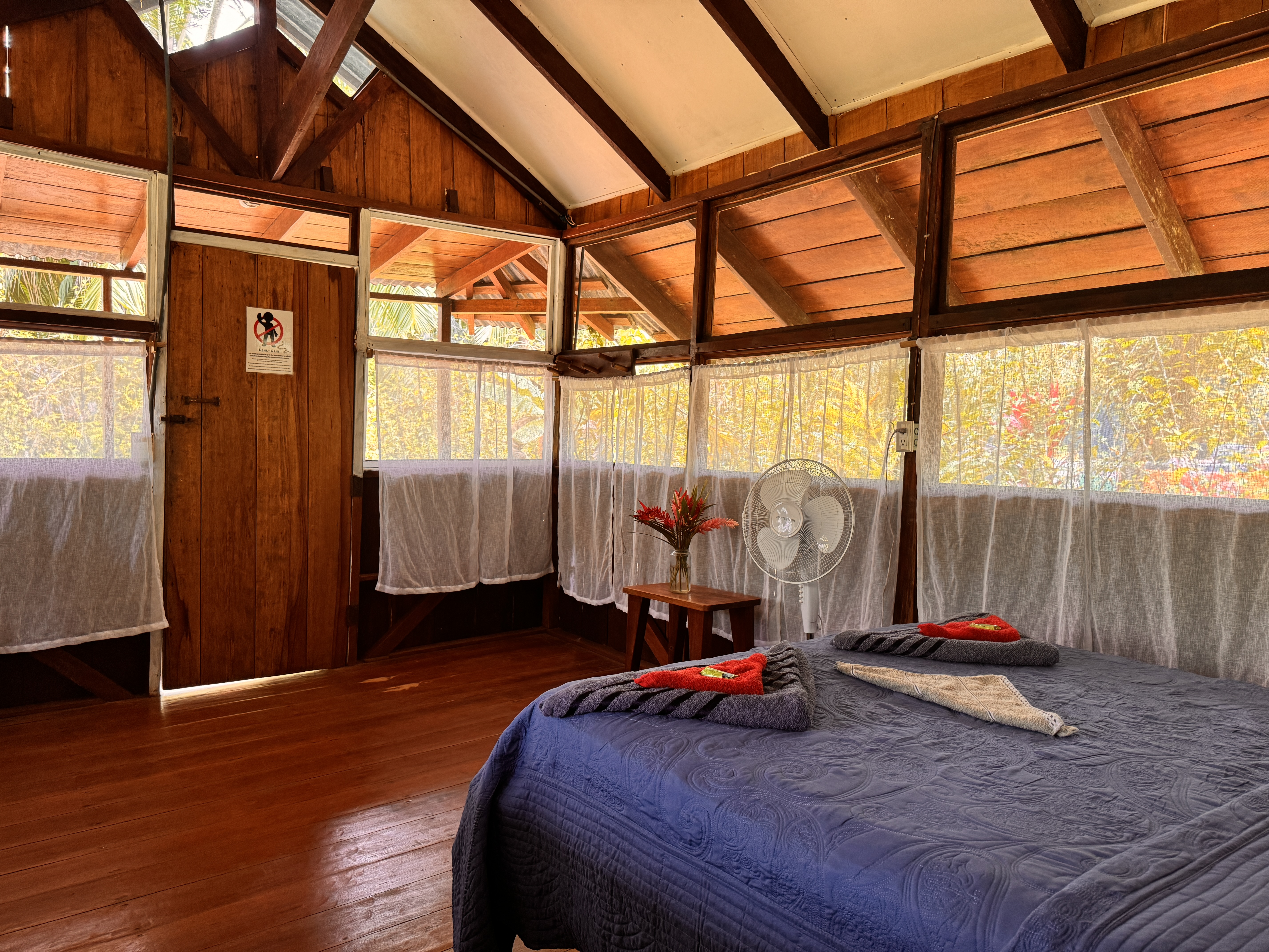 Casa Mono is the perfect choice for guests seeking tranquility and the rustic charm of Costa Rica’s countryside from days gone by. Located along the path leading to our private dock, it sits in a peaceful area with no other cabins nearby, offering privacy and a calm atmosphere surrounded by nature. Like all cabins at Sabalo Lodge, it is elevated on stilts, protecting it from ground moisture and wildlife while allowing natural airflow beneath the structure. Inside, the cabin welcomes up to two guests in a cozy space furnished with a comfortable double bed. The private bathroom includes a shower with hot water, toilet, and sink. A pleasant terrace in front of the cabin provides a relaxing spot to enjoy the sounds of the rainforest. WiFi is available within reach of the cabin. Guests are also invited to enjoy our on-site restaurant with a varied menu, the evening bar serving chilled drinks, and the natural swimming area set in tropical surroundings. Non-alcoholic beverages are available 24 hours a day in self-service mode.