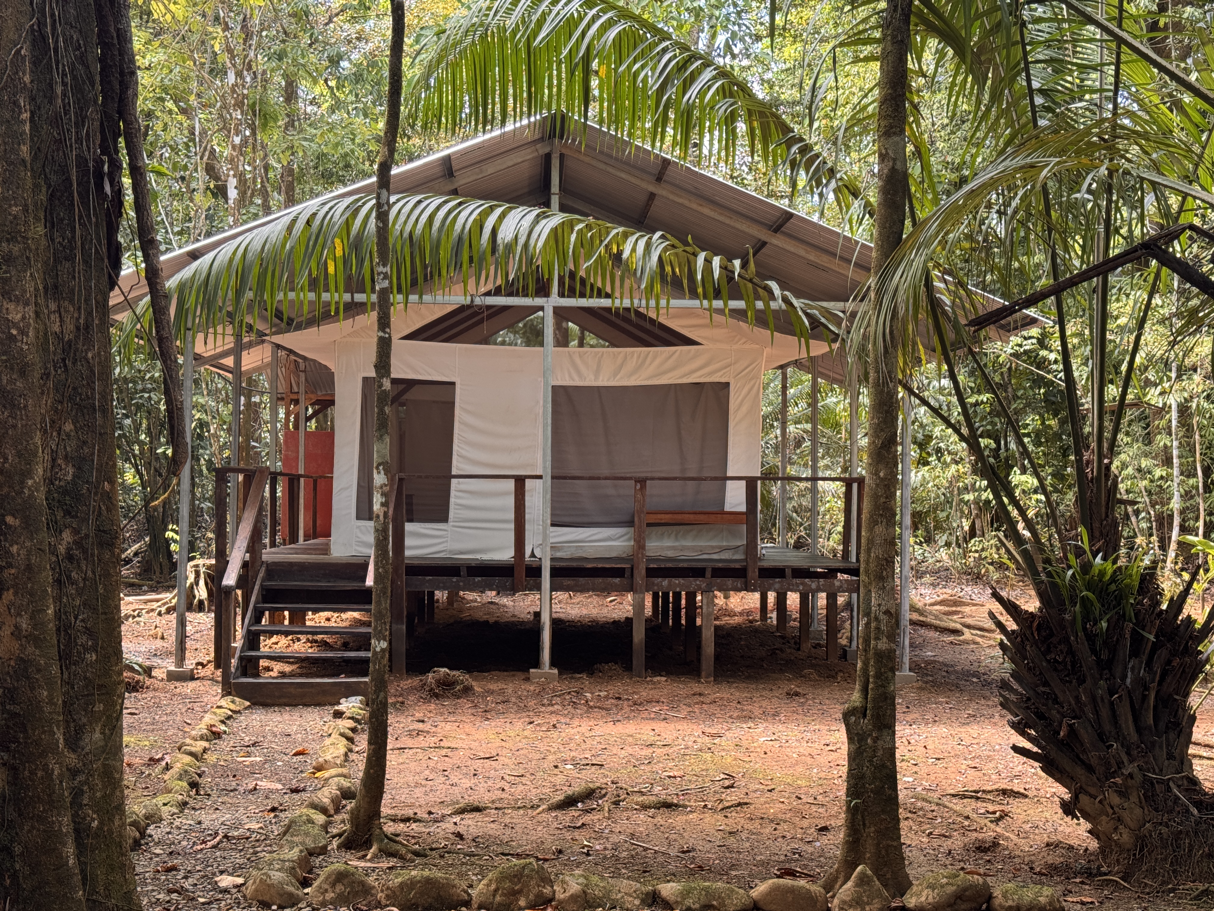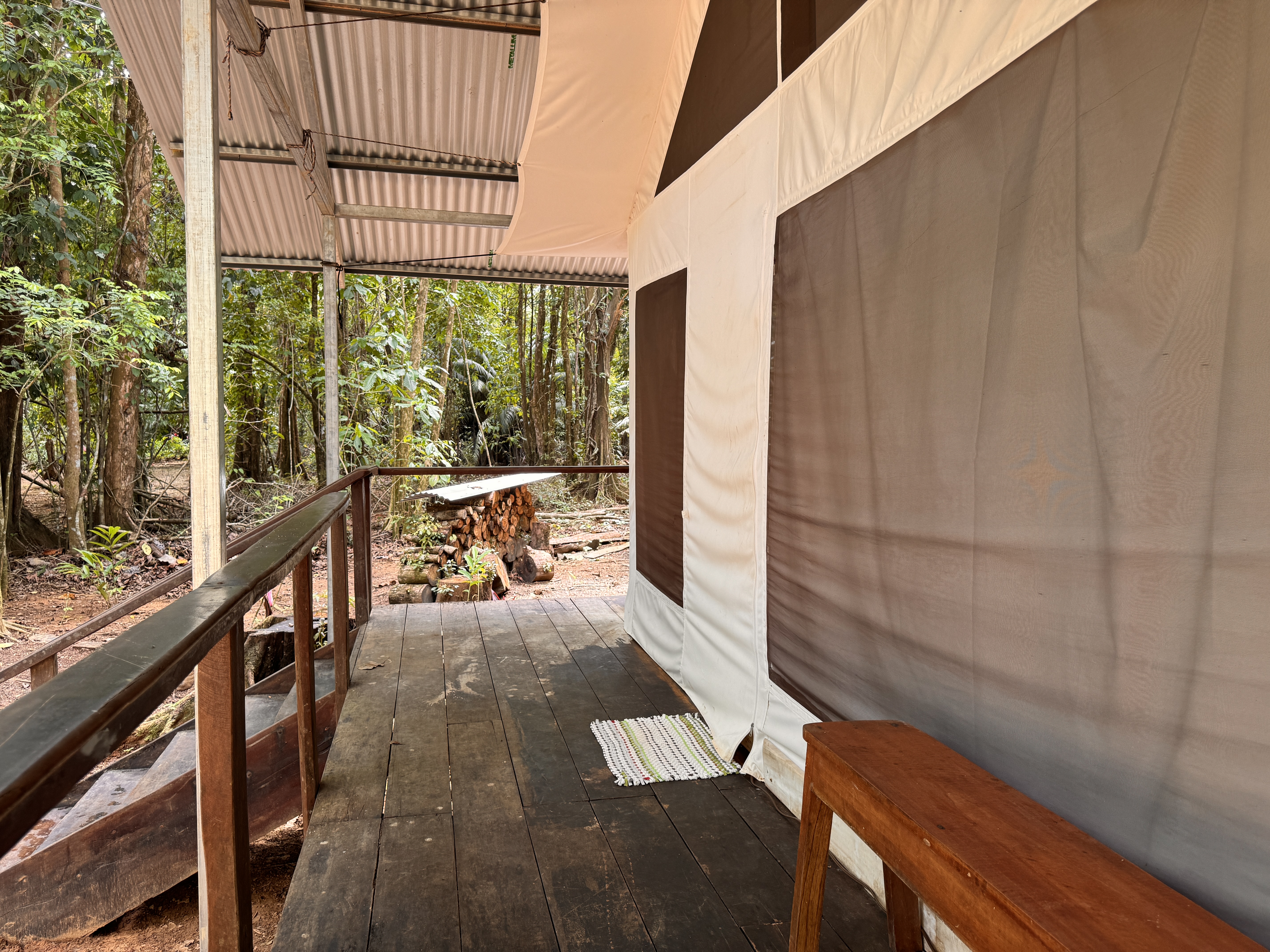 Jungle tent for 2 guests, set across the creek in a secluded rainforest location, with covered deck and private bathroom.